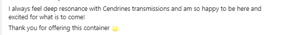 Cendrine's teachings strongly resonate with me. I love her way of speaking the truth, unapologetically. My human thrives on this! am drawn to Cendrine's energy and vibration and I will continue to follow her and look to her as a spiritual mentor & teacher as I journey through the quantum