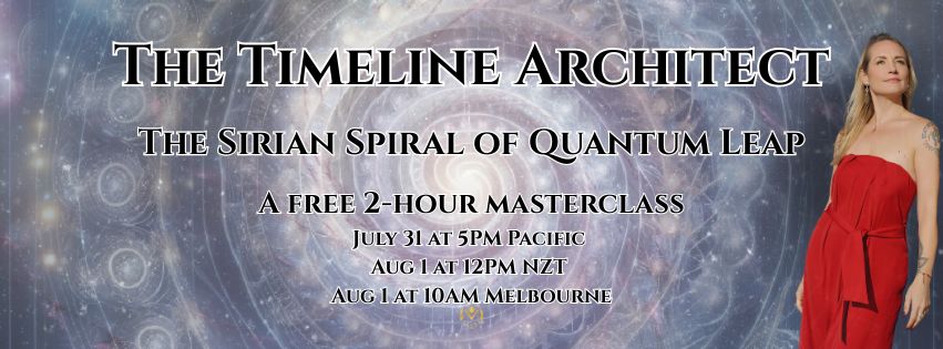 Join the free masterclass Timeline Architect, a high-frequency activation for divine revolutionaries of the New Earth who are done with excuses and ready to quantum leap into their highest reality by anchoring the bold, brave, God-backed frequency of the Age of Aquarius through embodied service, divine will, and multidimensional co-creation.